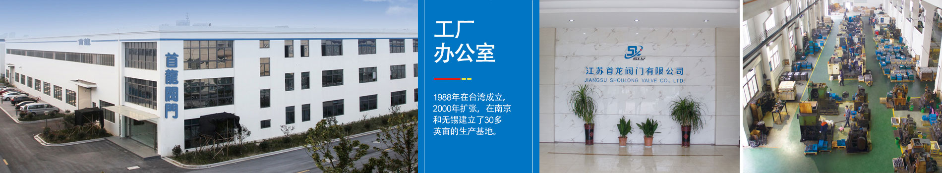 江蘇首龍閥門有限公司1988年在臺灣成立,是一家高品質的閥門制造商,主要產品以球閥、蝶閥、閘閥、截止閥、逆止閥、Y型過濾器、調節(jié)閥、氣動閥、電動閥等,可提供多種尺寸和材質。這些閥門廣泛應用於石油、化工、電站、印染、食品、制藥、冶金、給排水系統(tǒng)、市政工程等行業(yè)。2000年公司進行了擴建,在中國大陸華南區(qū)成立首龍閥門有限公司,以臺灣產品結構為主的大陸工廠,投資1000萬美元,新建了一座面積約20000平方米的廠房,成立了第二個工廠,年生產力達到2000噸以上,年銷售量達到2000噸。公司還通過了ISO9001-2000,TRD100,CE,API6D,API607,DNV和CNS正字標記等證書。